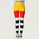 Leggings com design striped em amarelo, vermelho, preto e branco. Criada a coordenar com os Souvenirs espanhóis a gama de vestuário e acessórios.