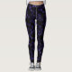 Leggings com Padrão de Folhas Azul Escuro