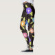 Senhoras, leggings pretas, calças casuais com um impressão grande florido em blues, pinks e verde limão, ideais como sabichão desportivo.