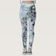 Leggings de designer com tinta manual para ela. Azul misto/preto.