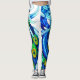 Um lápis de cor original desenhado por Sandra Gale, com belas penas azuis e lacrimogêneas que rodeiam as pernas destas leggings únicas. Trabalhos de arte que são do tipo e fazem de você a única pessoa mais legal na classe de ioga ou jogger na rua!