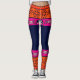 Leggings com a imagem de design retroboêmico em cores de laranja, azul e pinks.
