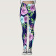 leggings de padrão floral azul roxo perfeitas para dar como presente. Tem um design de padrão floral roxo e azul com folhas verdes