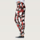 Leggings marcadas por variáveis vermelhas, brancas e pretas, Estilo caótico e controlado.