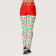 Leggings verdes e vermelhos pontilhados com trevos dourados.