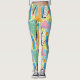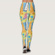 Design original de leggings yoga estilo onda sintética/vaporwave com formas e um fundo amarelo e azul no estilo Memphis.