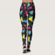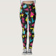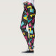Design original de leggings yoga estilo onda sintética/vaporwave com formas e um fundo preto no estilo Memphis.