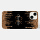 Um fundo preto clássico, com brilho escura de ouro, pingos, pintura pingando. Personalize e adicione um nome e iniciais de monograma. O nome é escrito com um moderno estilo escrito à mão. Letras brancas e ouros.