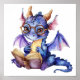 Um pequeno dragão roxo bonito vestindo óculos e lendo um livro. Excelente por encorajar o seu filho a ler. Também seria um bom presente para um professor para a sala de aula. Decor de viveiro quadrado de 12" x 12". Imagem assistida por IA adquirida com licença comercial. Trabalho de arte: MokoDE