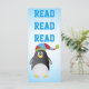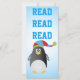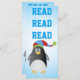 Pinguim bonito lendo a marca do livro para leitores de todas as idades. Personalize com um nome de professor, nome de aluno, nome do clube de livros, nome da biblioteca, nome do clube de leitura, nome do grupo de leitura ou mensagem inspiradora.