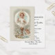 Personalize este belo Cartão de Memória da Primeira Comunhão Católica com uma imagem da mão de Jesus erguida em benção dentro do anfitrião. Os anjos estão em adorações por baixo e lindas flores pastéis adoram o altar onde o cálice é colocado.