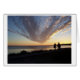 Um par andando em um encontro romântico à beira-mar com lindas nuvens no céu