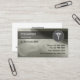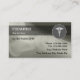 Cartões de visitas de Podiatria Médica com um emblema médico que inclui um símbolo médico e um raio-X de pé no fundo, juntamente com um modelo de aviso de compromisso no verso. Personalize o texto e o layout, pense nisso como um modelo de cartão de negócios para um médico de Podiatria, clínica médica ou médico.