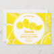 Um convite de aniversário para crianças com limões na frente. O convite é horizontal com um design de fundo de limão. Todas as palavras podem ser personalizadas.