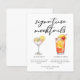 Lovely lemon mocktails menu sheet for your non-alcoholic wedding bar or summer pool party. Cute drawings of two refreshing drinks, a Lemon Drop and a Summer Sunrise. Personalize with your name or event.