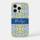 "Lemon Mediterranean", "Blue White Tile Pattern", "citrus fruit", "Amalfi coast", "Italian tiles", "summer aesthetic", "blue scrollwork", "personalized gift", "vibrant botanical", "vintage Mediterranean"