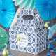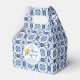 Uma bonito caixa de favor de chá de panela de limão decorada com limões e azulejo azul italiano, com as palavras, ela encontrou seu principal aperto. Perfeito para seus convidados de chá de panela de limão azul italiano. Projetado para você pelo Blackberry Boulevard.
