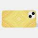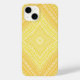 Um caso colorido e fofo no iPhone 14 com um design de caleidoscópio branco e amarelo-limão.