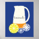 Lemonade Pitcher com limões Poster Art. Esta arte colorida é perfeita para a sua cozinha ou para qualquer lugar que você queira relaxar.
