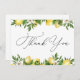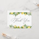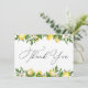O cartões de agradecimentos apresenta uma borda de limões de aquarela e verde. Personalize com suas informações ou clique em "Clique para personalizar mais" para editar estilos de fonte, tamanho e cores. Também pode ser personalizado no verso com sua própria mensagem digitada ou excluir este espaço para escrever manualmente seu próprio obrigado.