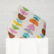 Emplume-se seu ninho com este lenço de papel colorido retro dos ninhos! As características que de design um fundo de creme com ouro salpica e enfileira maravilhosamente dos semi-círculos kitschy, coloridos que descansam em ramos minimalistic, pretos. Os semi-círculos assemelham-se ao conto de fadas, aos ninhos do pássaro nas máscaras da luz - azul, à cerceta, à turquesa, à laranja, ao rosa, ao amarelo, ao verde, às cinzas, e ao marrom. Os ninhos alaranjados têm um teste padrão do tijolo do divertimento e os ninhos marrons caracterizam uma grão da madeira dos desenhos animados. O ninho encheu árvores alterna entre o direito-side acima e upside-down, que significa os olhares lunáticos deste design mesmo perfeitos ao estar em sua cabeça. Este teste padrão é reminiscente de um design moderno do meio século do vintage. Você é certo apreciar nossa homenagem aos anos 50. Compre isto hoje e seja o gato o mais fresco em seu bloco.