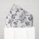 O negócio bonito marcou o lenço de papel feito do branco, o cinzento e o preto teste padrão toile floral inspirado em um francês. Um oval preto do texto, em uma extremidade do papel tem o texto feito sob encomenda branco pronto para personalizar para suas necessidades do negócio.