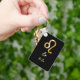 Chaveiro de sinal zodiaco elegante com design de ouro sobre fundo preto.