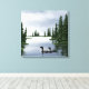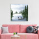 Um par de luas a planar no lago entre árvores verdes e verdes nesta cena de arte da vida selvagem no campo de pousada na canvas.