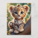 Leopardo bebê na selva anime, cartão postal, cartão postal, corretor postal, corretor postal, cartão postal animal, vida selvagem, selva, cartão postal adorável, fofo, geração IA, conteúdo generativo