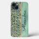 Nesta capa de telefone de na moda é uma fita-ouro brilhante que divide verticalmente a impressão-leopardo-de-ouro brilhante e o pano de fundo verde-jade brilhante onde você pode personalizá-la para torná-la única e exclusivamente sua. Vibrações de glama. Perfeito para qualquer acessório temático de impressão leopardo.