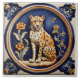 Leopardo Chita e Flores Azul Escuro Antiguo