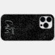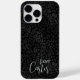 Capas de iphone-leopardo-negro elegante com tipografia personalizável em letra de script de tendências e personalizada com seu nome.