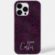 Capas de iphone elegante magenta ou rosa-escuro do leopardo preto com tipografia personalizável na letra da "Trendy Script" e personalizada com o seu nome.