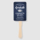 Adicione um toque personalizado legal a uma faculdade ou festa de formatura segundo grau com estes ventiladores de mão azul, branco e prateado com marinho personalizado. Design apresenta um fundo azul escovado, boné de conselho de argamassa de aço inoxidável falso, uma fotografia do formando, tipografia moderna na moda, caligrafia de script de estilo manuscrito e uma mensagem personalizável lendo "Parabéns para nosso Formando". O texto na parte inferior inclui o ano da aula, o nome da escola e uma linha opcional para o grau, as honras ou a citação de inspiração favorita, obrigados, mãe e pai, ou outras informações. Todo texto é simples de personalizar. Por favor, note que prata é cor impressa, não é folha metálica. Faz uma ideia elegante e personalizada para favores e decorações de festas de formatura. Perfeito para exibir uma foto favorita, como uma foto de mais velho ou imagem da cerimônia de inicio. Parabéns ao formando!