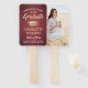 Adicione um toque personalizado legal a uma faculdade ou festa de formatura com estes fãs personalizados de fotos burgundy, ouro e branco. Design apresenta um fundo de aço inoxidável piscado, vermelho-marrom, uma imagem do formando, tipografia moderna na moda, caligrafia de script de estilo manuscrito e uma mensagem personalizável que lê "Parabéns para nosso Formando". O texto na parte inferior inclui o ano da aula, o nome da escola e uma linha opcional para o grau, as honras ou a citação de inspiração favorita, obrigados, mãe e pai, ou outras informações. Todo texto é simples de personalizar. Observe que o ouro é impresso a cor, não a folha metálica. Faz uma ideia elegante e personalizada para favores e decorações de festas de formatura. Perfeito para exibir uma foto favorita, como uma foto de mais velho ou imagem da cerimônia de inicio. Parabéns ao formando!