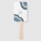 Nem todos os designs de casamento são criados iguais. Os layouts assimétricos para as peças neste impressionante conjunto de casamento provam que isso não é ruim! Bandas onduladas de cor em tons de azul empoeirado a bege arenoso com um centro de cristal brilhando formam um sotaque geode/agato na maioria das peças do conjunto. O fã de mão 'Programa ou Lista de Festas de casamento' do casamento mostrado aqui apresenta o acima mais uma modelo para adicionar os detalhes pertinentes do seu casamento. O contrário também permite que você adicione uma mensagem pessoal, os nomes da noiva e do noivo e a data do casamento. Procure ID647 para ver todas as peças de coordenação neste conjunto.