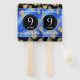 Celebrar o 9º aniversário de casamento do lapis lazuli com estes fãs de mão na moda! As inscrições brancas elegantes com confete hexagonal de pírite em um fundo azul-azure especulado acrescentam um toque memorável para esta ocasião especial e marco. Personalize com os nomes do casal e as datas do casamento. O reverso mostra design idêntico. Design © W.H. Sim. Mais informações em zazzle.com/expressionsoccasions