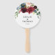 Estes fãs de mão de casamentos ruidosos e deslumbrantes no outono são perfeitos para um casamento moderno. A design apresenta flores brilhantes, vermelhas, marinhos, azuis e esbranquiçadas radiantes e graciosas pintadas à mão, inspiradoras beleza natural.