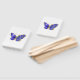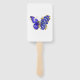 Borboleta de flores cinza, azul, safira, espumante com asa decorada com flores preciosos azuis com folhas de ouro sobre fundo branco.