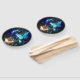 Fabulosa, brilhante, azul e amarela, borboleta noturna sobre fundo escuro.