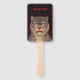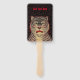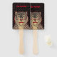 Este ventilador de mão é preto com pontos vermelhos e a cabeça de um tigre com listras pretas com uma face de aparência feroz e destaques vermelhos. Personalize seu texto na frente e nas costas com o modelo.
