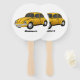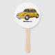 Um carro clássico amarelo feliz. Desenhado no estilo de desenho animado.