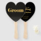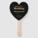 Um ventilador manual com texto em negrito e dourado em 3D. Personalize-o para o seu dia especial.