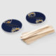 Leque Casamento de Peões Azuis e Dourados com Aquarelas
