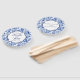 Um fã de casamento com um elegante design de toile floral azul e branco.