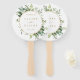 Este ventilador de mão do casamento mostra cor d'água eucalipto verde, folhas verdes com uma estrutura circular dourada. Para personalização mais avançada deste design, clique no link "Personalizar mais". Itens correspondentes também estão disponíveis.