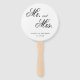 Um fã do programa de núpcias da tipografia, com as palavras "Sr. e Sra." em elegante caligrafia negra, seus nomes e data de núpcias, sobre um fundo branco. Adicione seus eventos de cerimônia atrás. Se você vai ter um casamento ao ar livre, esses fãs de mão são uma excelente para oferecer aos seus hóspedes para ajudá-los a se manter legal e também fazer uma lembrança de excelente.
