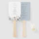 Elegante Watercolor Dusty Blue Garden Botanical Floral Border, fã de mão do programa de casamento. Tipografia das Cinzas escuras com cores de fundo brancas e azuis, coordenadas.