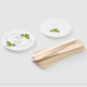 Design apresenta girassóis e folhas botânicas sobre uma imagem geométrica dourada impressa.