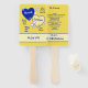Personalize este fã de mão do casamento com todos os detalhes da cerimônia de casamento. Projetado em azul real e amarelo, com corações amorosos.